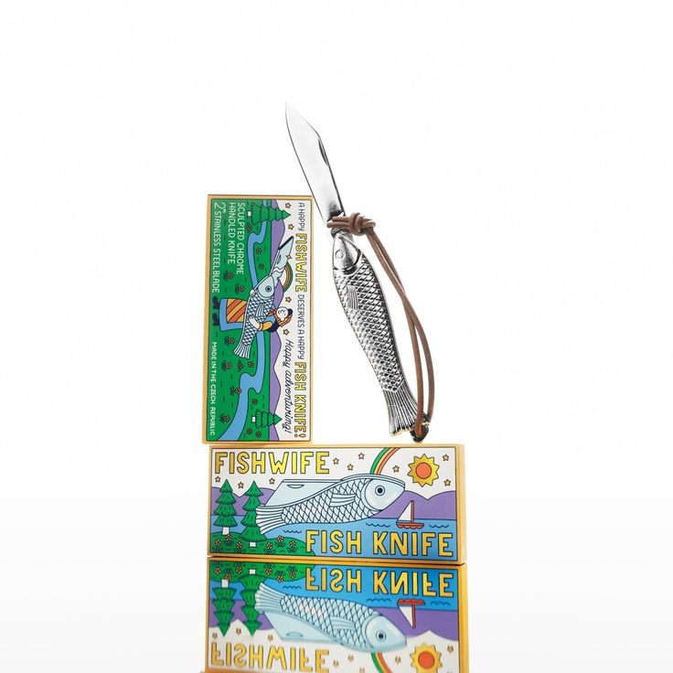 I have not (yet) bought this knife, but it is tiny, it is shaped like a fish, and it comes in imitation sardine packaging. It looks very cool online. Shit, okay. I just bought it. I will report back.